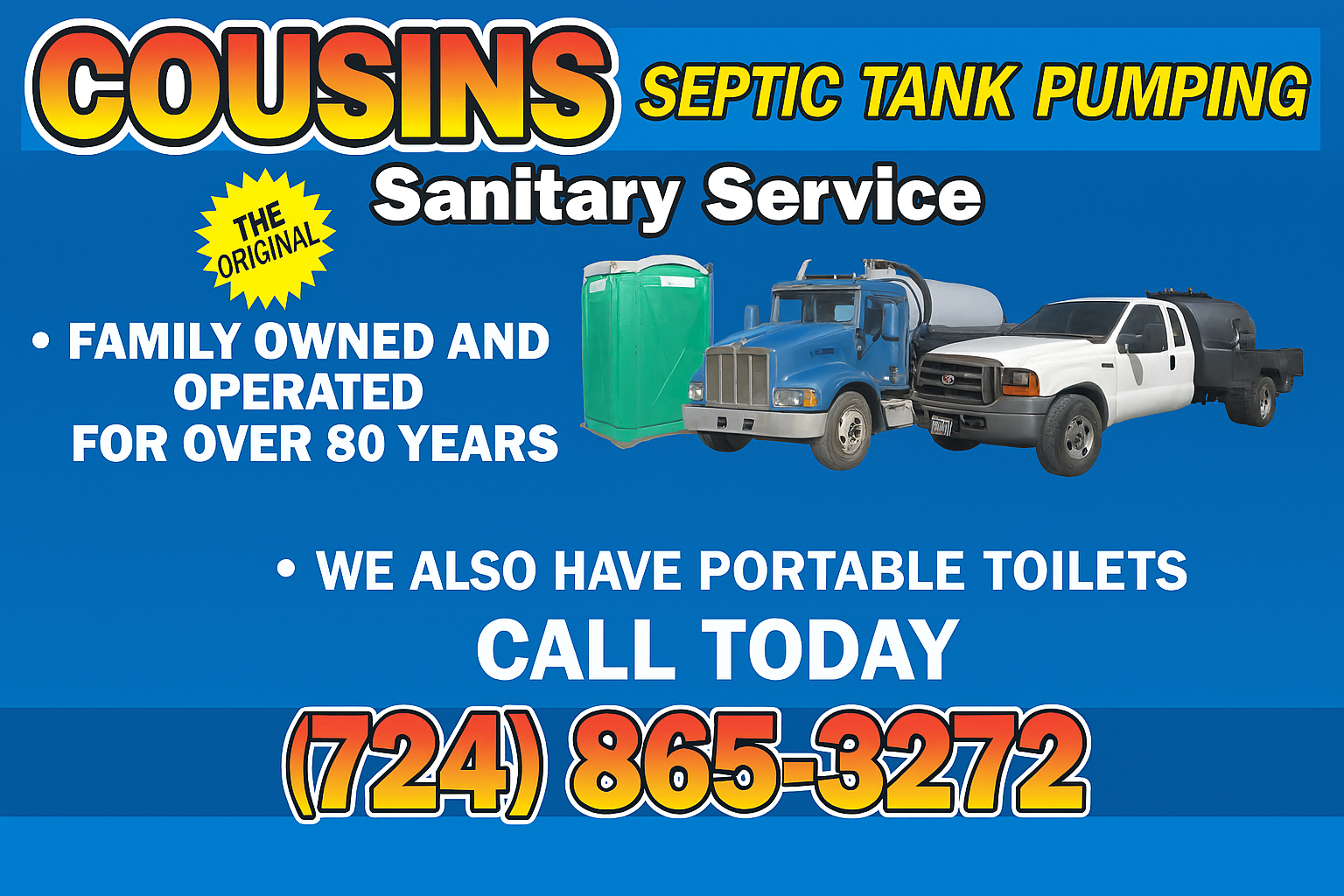 and let Cousins A-1 Sanitary Service take care of you. Your satisfaction is guaranteed.